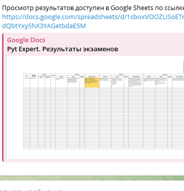 Просмотр результатов экзаменов в общей таблице Google Sheets
